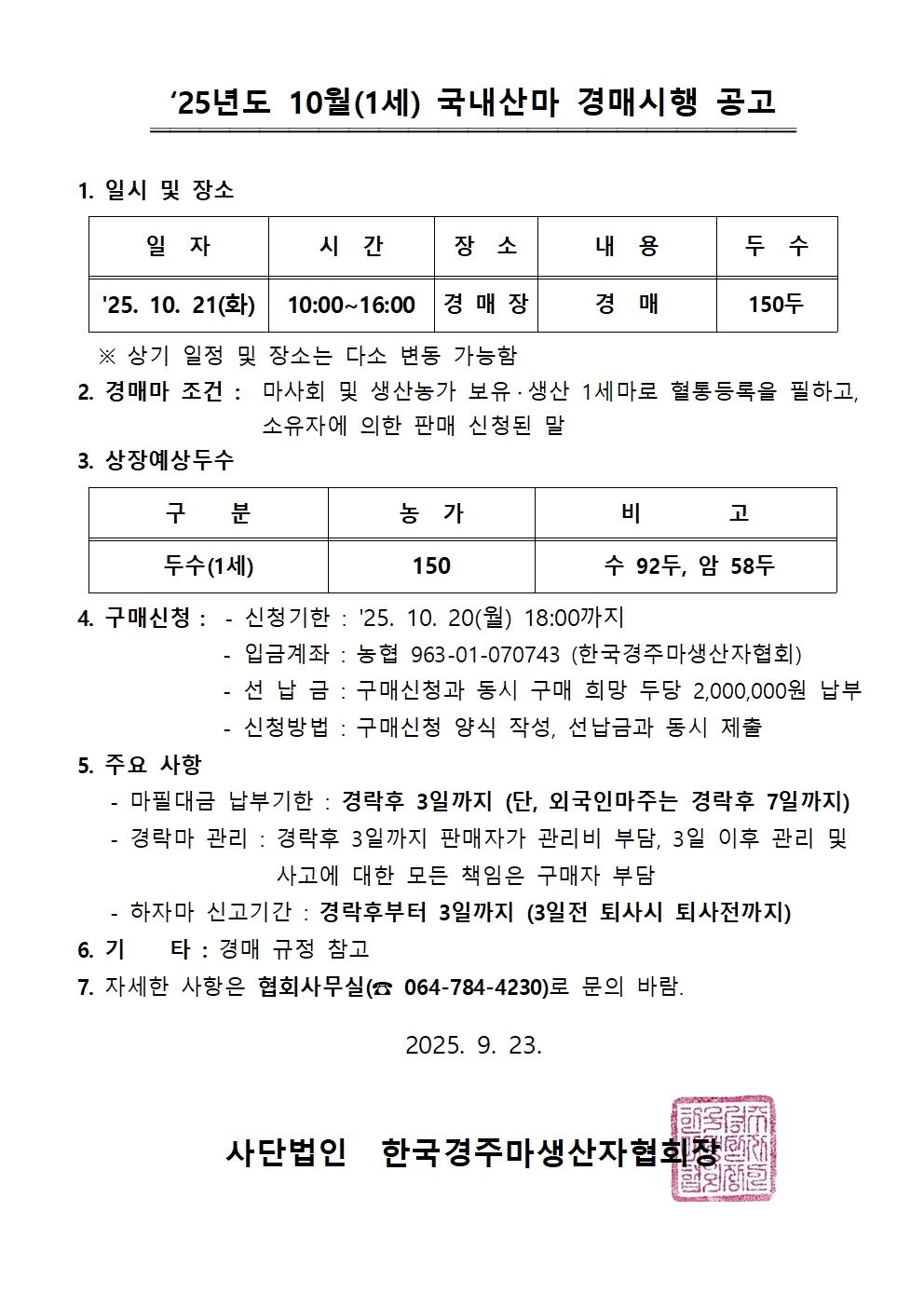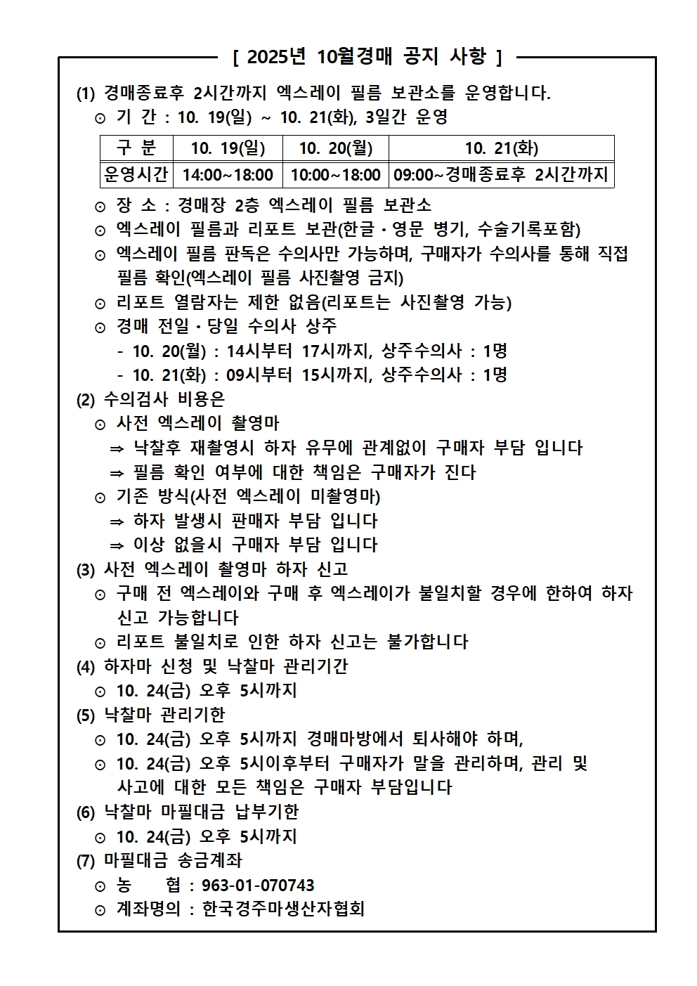 * 기타 자세한 사항은 한국경주마 생산자협회 홈페이지 참고하세요.